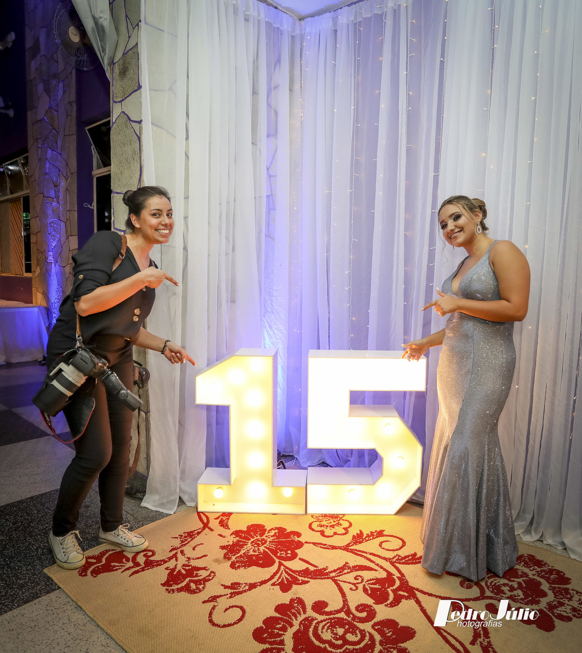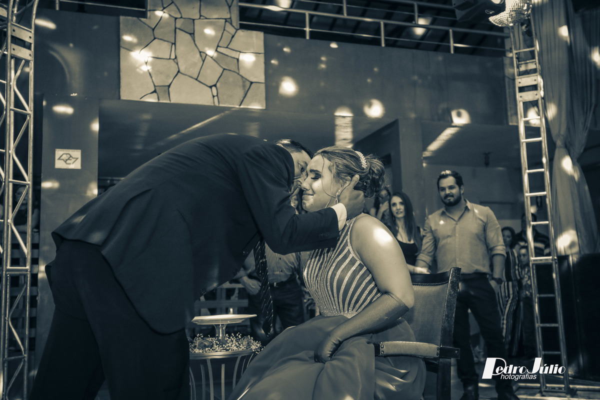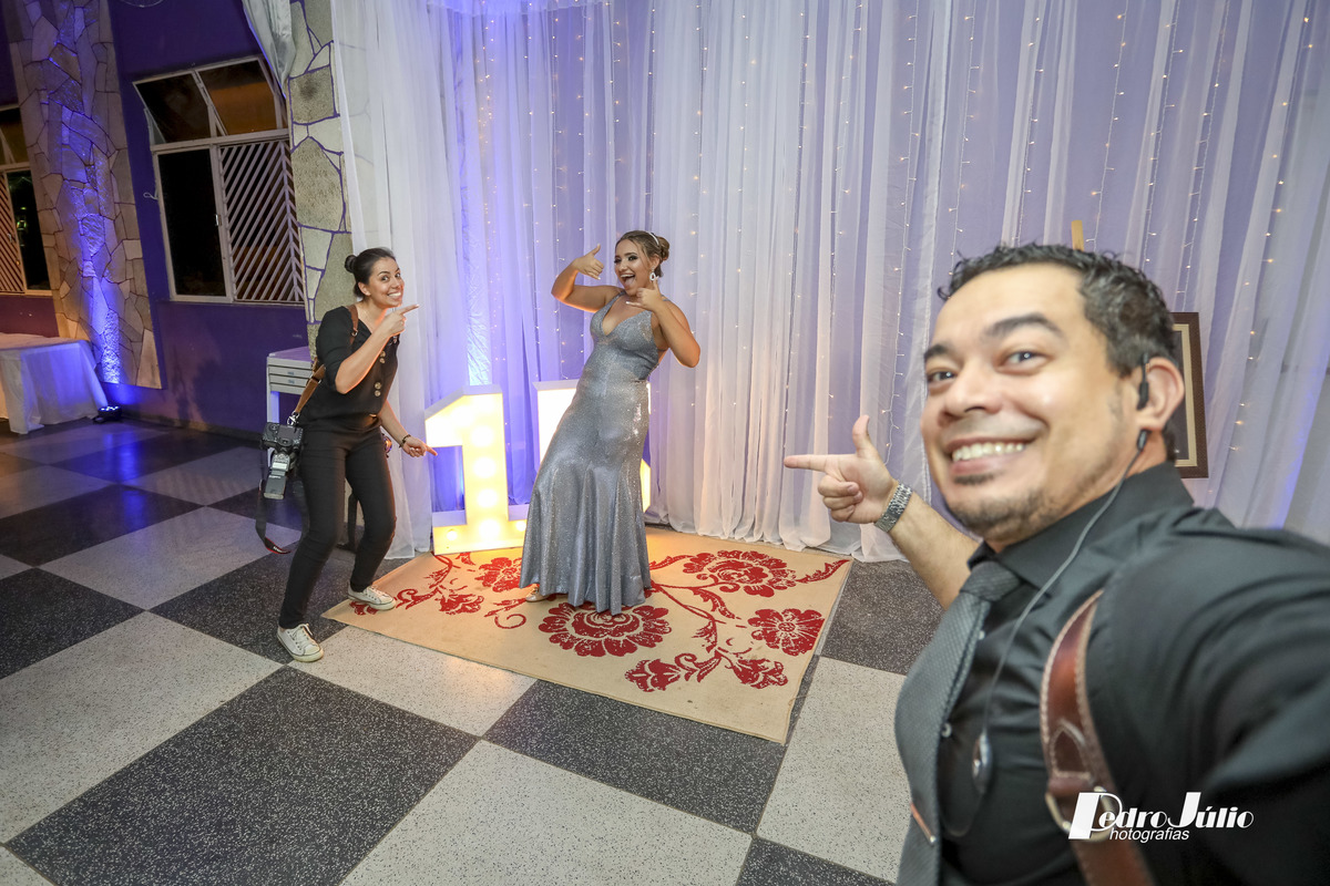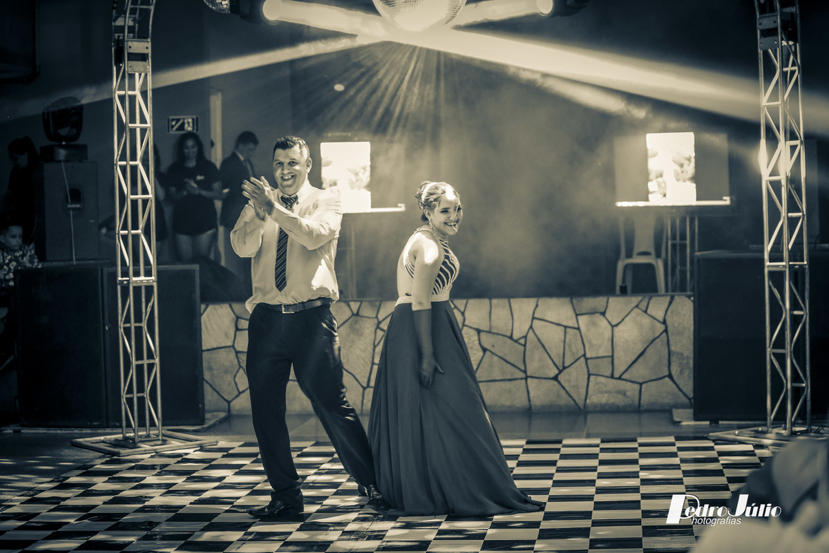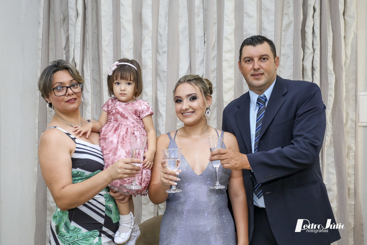 Maria Júlia, sabemos quanto sonhou com esse dia, quantos esforços se deram para que tudo saísse como imaginaram! Mas acredito, que valeu a pena, e que os sorrisos que foram lançados por você nesta noite alegrou o coração de todos e principalmente de seus pais. Desejamos que essa alegria te acompanhe por todos os dias e que seus sonhos se tornem realidade. Obrigado de coração a você e a seus pais Luís e Camila pelo carinho e confiança em nós, foi maravilhoso estar com vocês. Deus os abençoe. Um grande abraço Pedro e Vanessa.